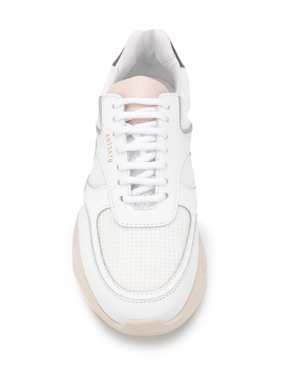 Baskets à empiècements en mesh en cuir Axel Arigato avec fermeture à lacer sur le devant, languette à logo, semelle intérieure à logo, bout rond et semelle en caoutchouc blanc.
