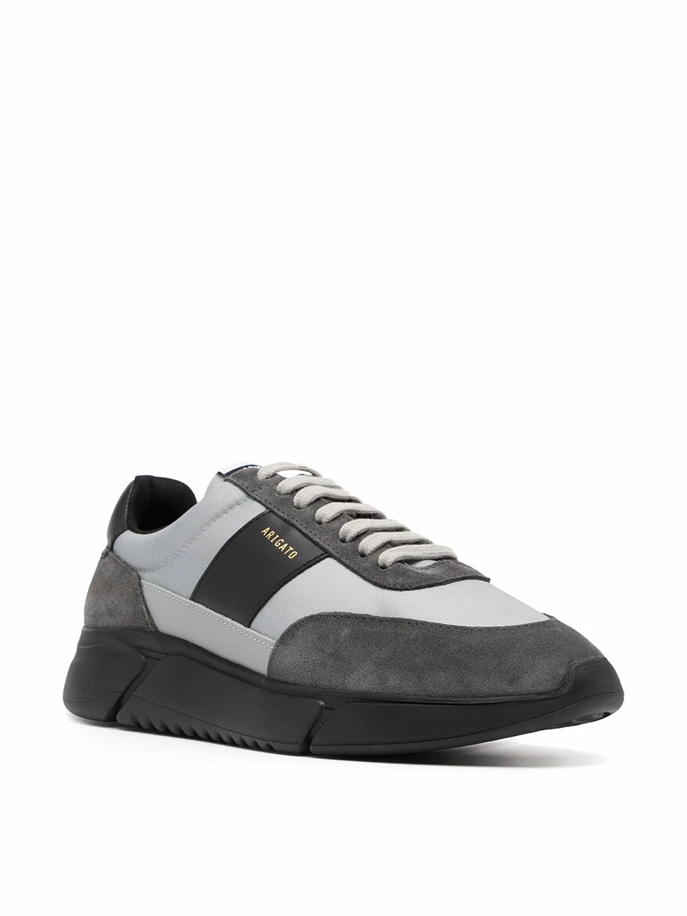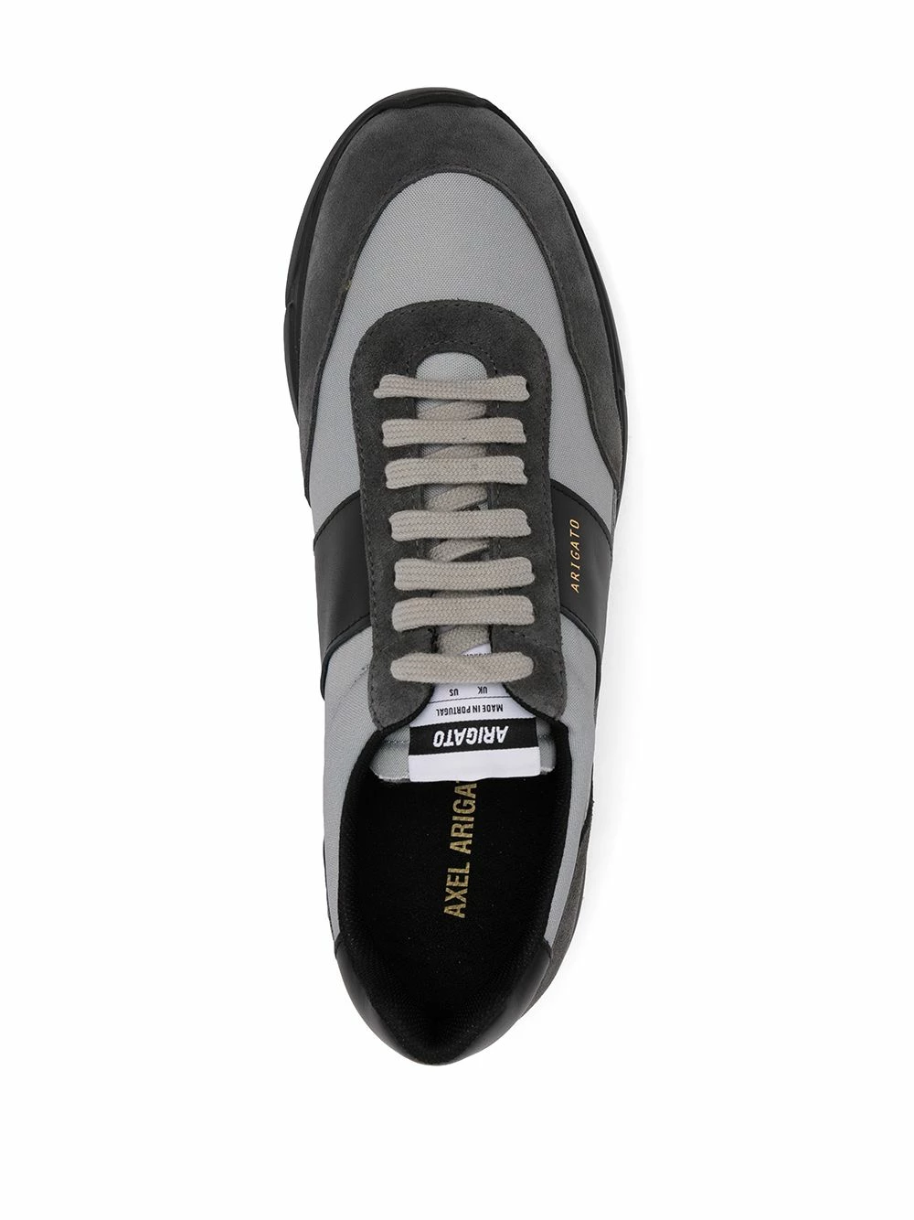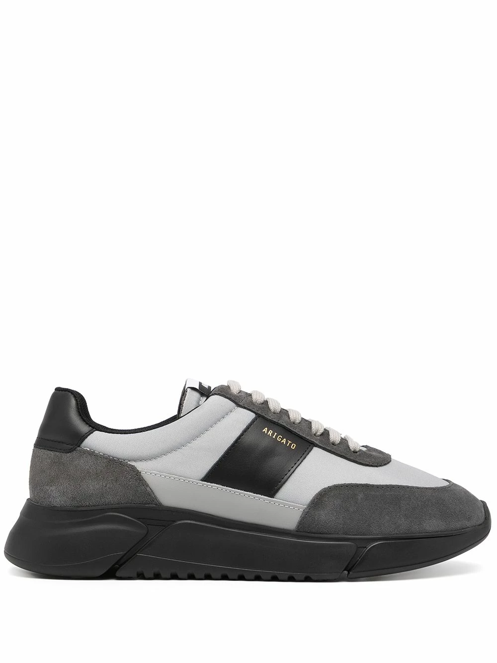 Design à empiècements, logo doré, fermeture à lacer sur le devant, semelle plate en caoutchouc, languette à patch logo. Matière : cuir.