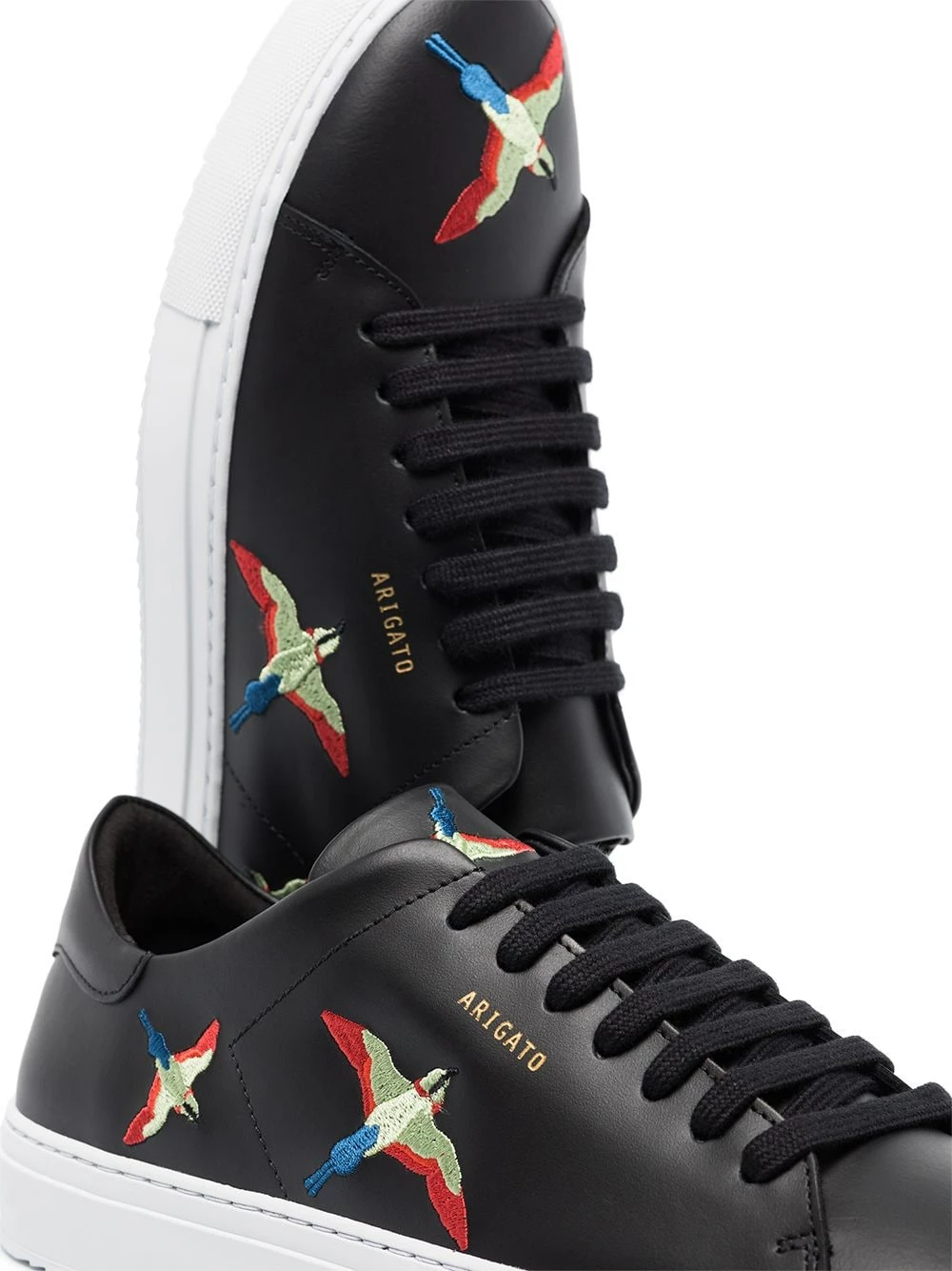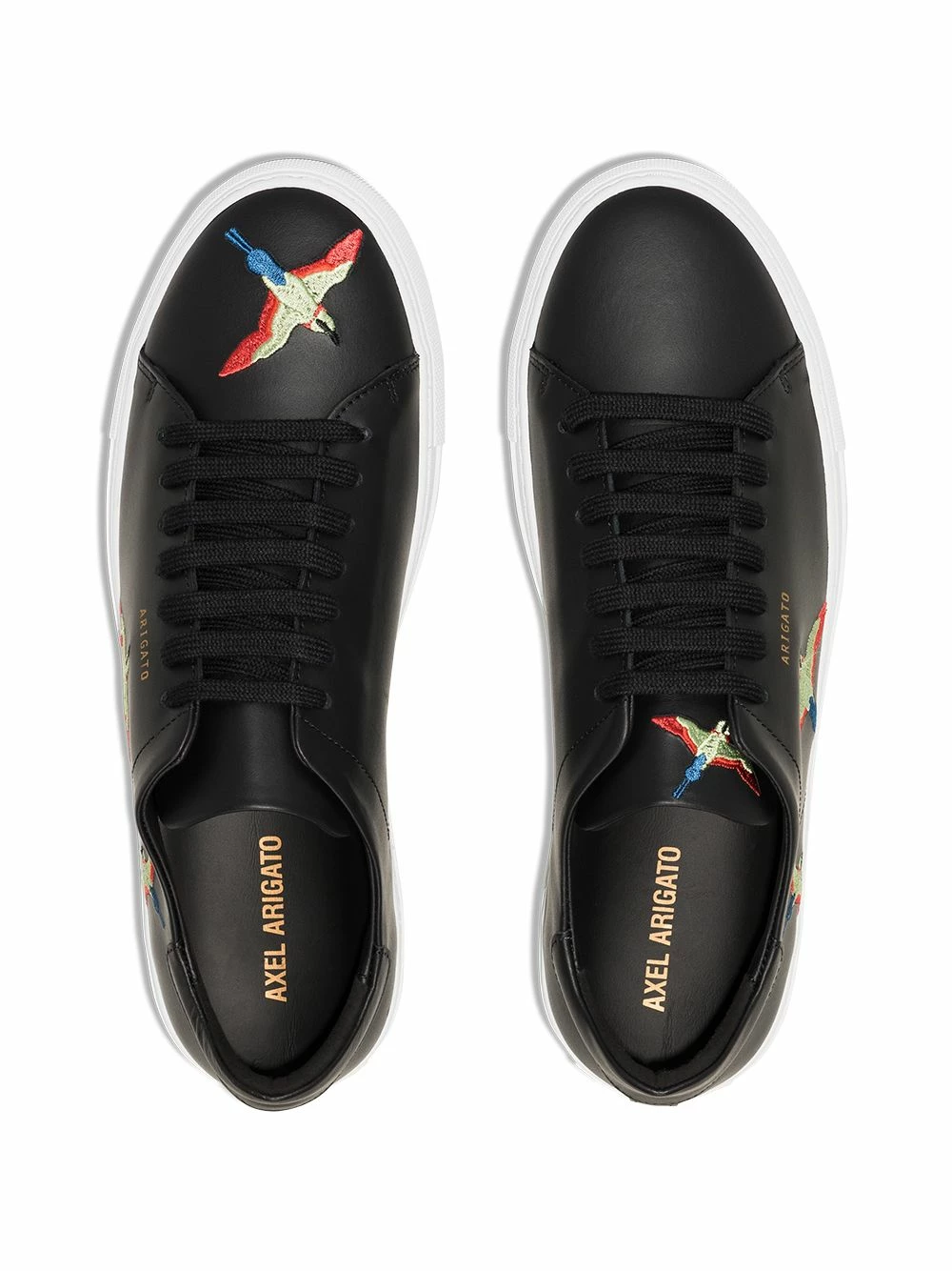 Baskets en cuir à oiseaux brodés Clean 90 Axel Arigato. Couleur : noir.