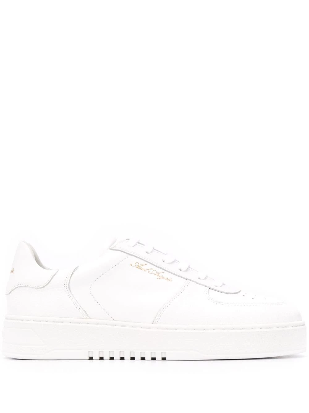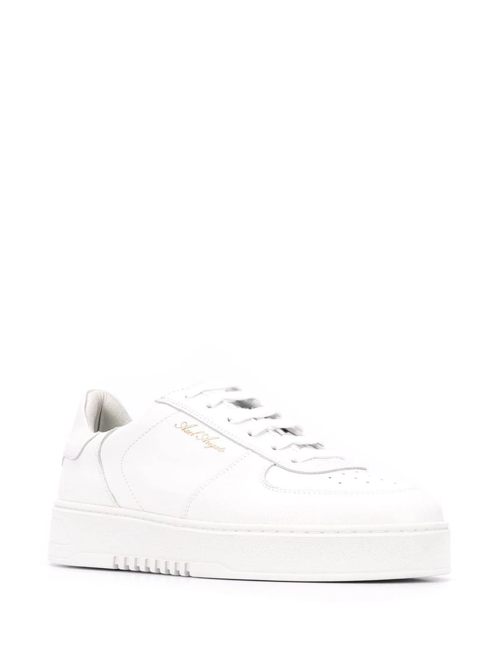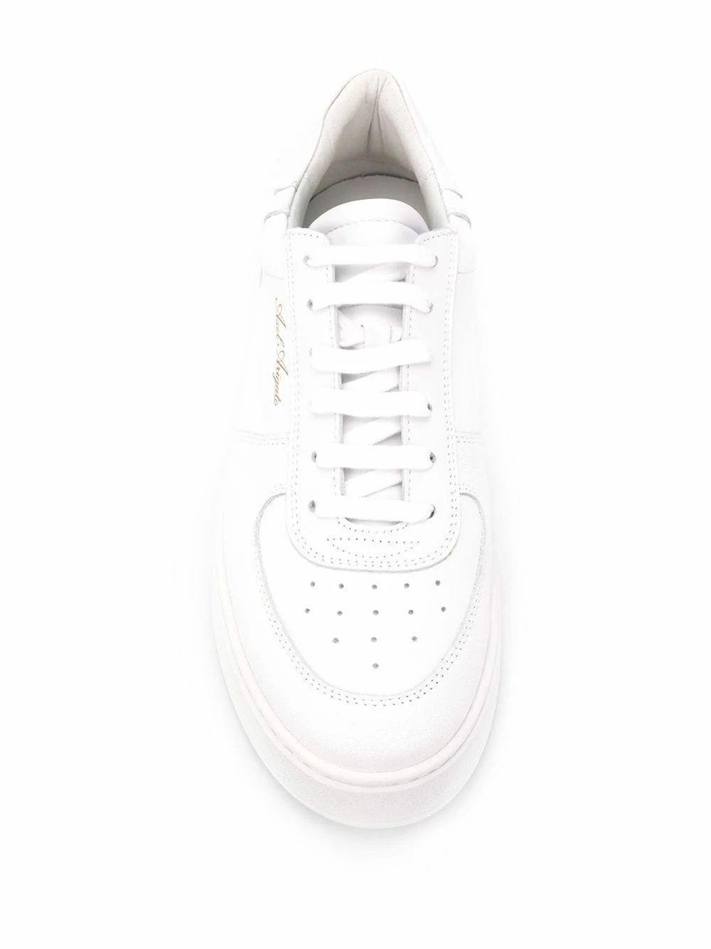 Design à empiècements, détails de perforations, logo imprimé sur le côté, contrefort à logo, fermeture à lacer sur le devant, bout rond, semelle crantée en caoutchouc. Couleur : blanc. Matière : cuir.