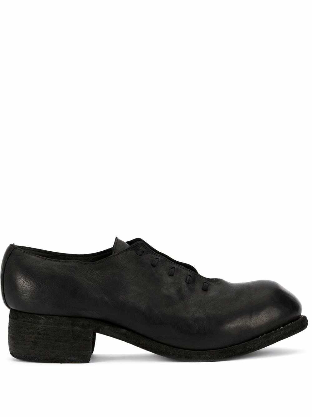 Richelieus en cuir de veau noir à petit talon épais Guidi.