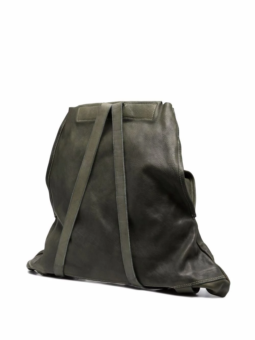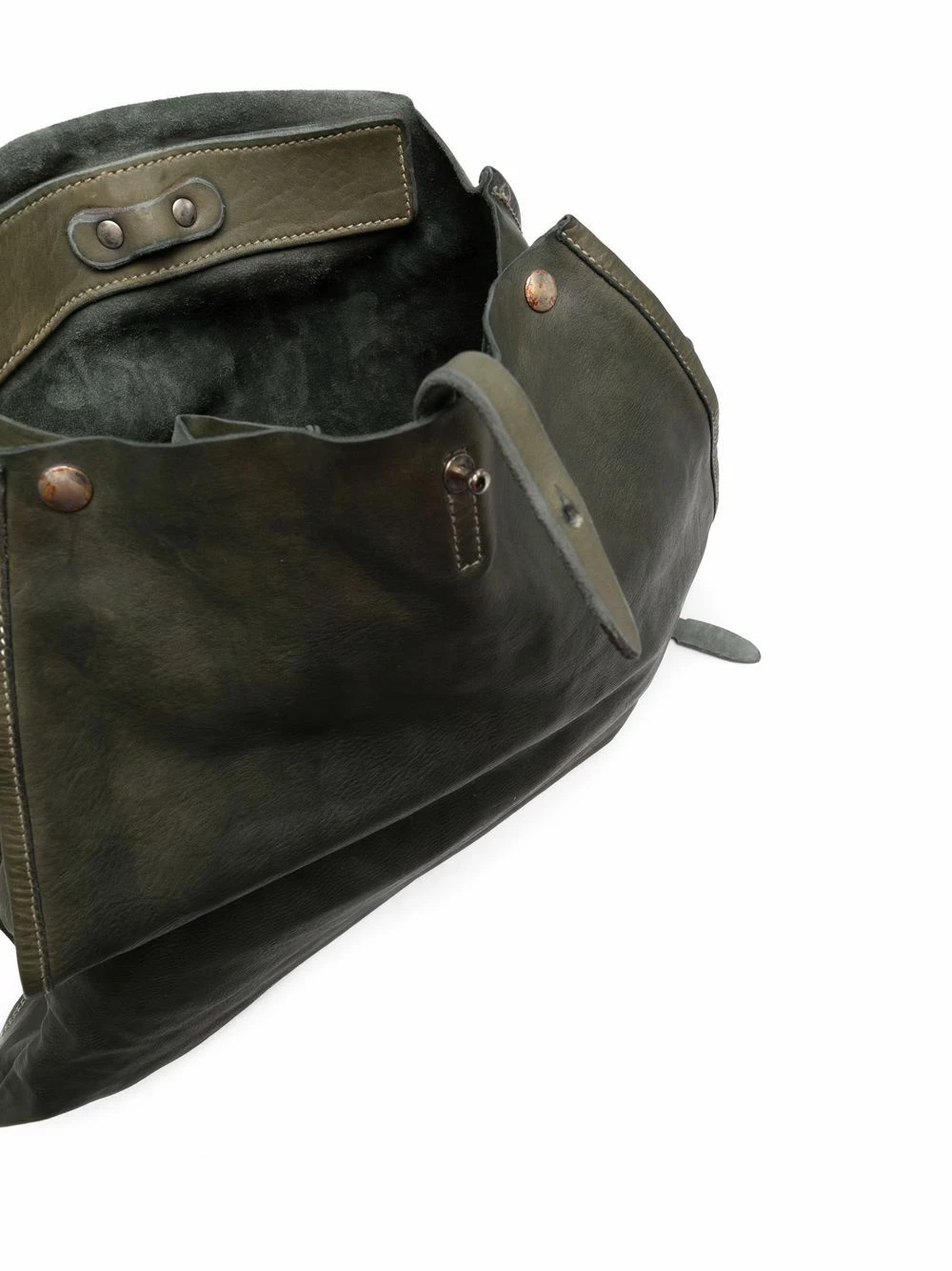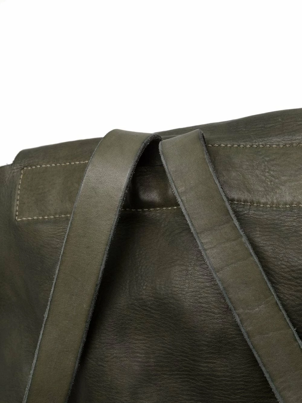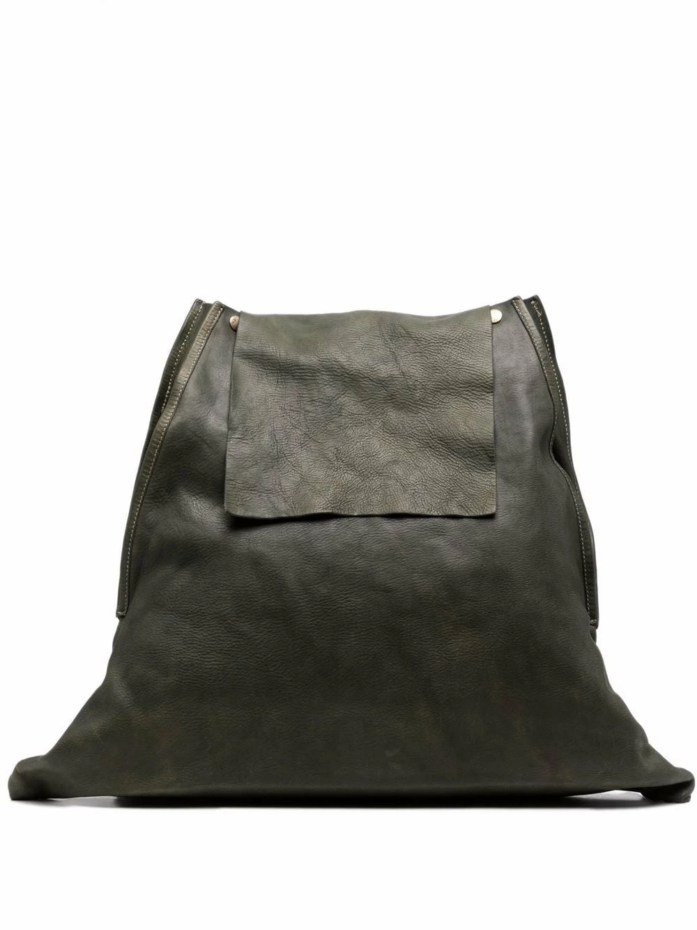 Empiècements géométriques, rabat sur le dessus, brides porté épaule ajustables. Matière : cuir.