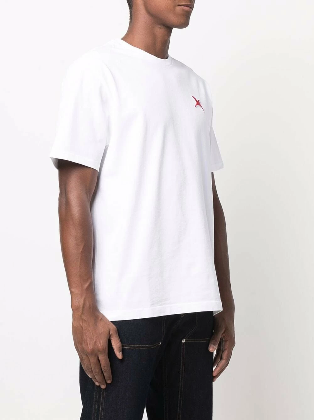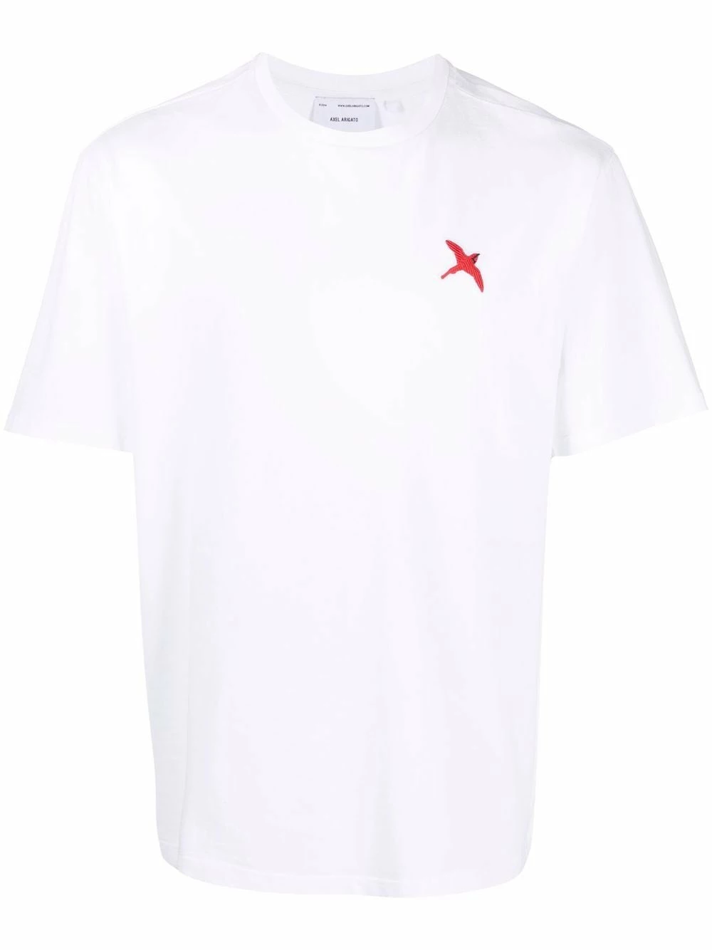 Patch poitrine à logo, encolure ras du cou, manches courtes, ourlet droit. Couleur : blanc. Matière : coton biologique.