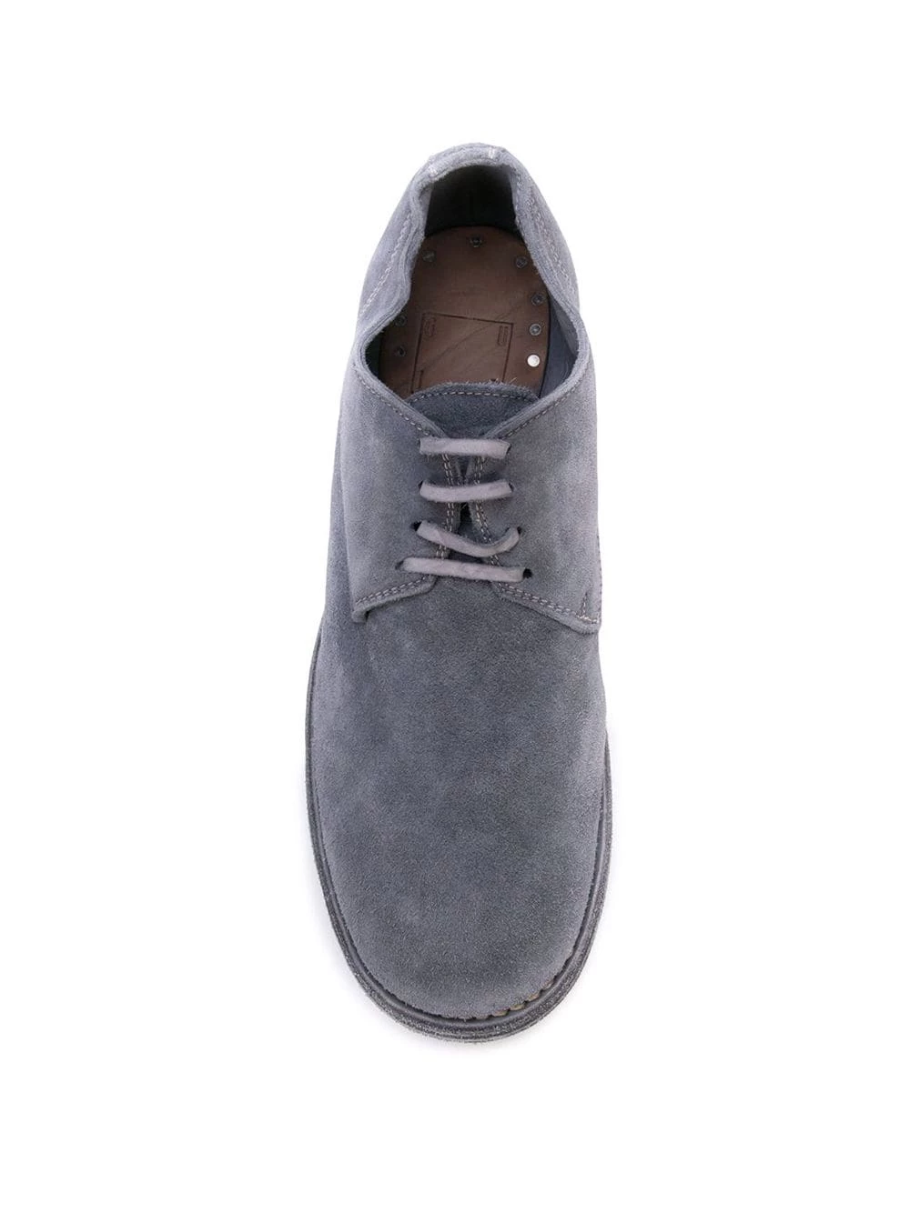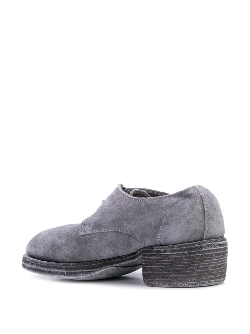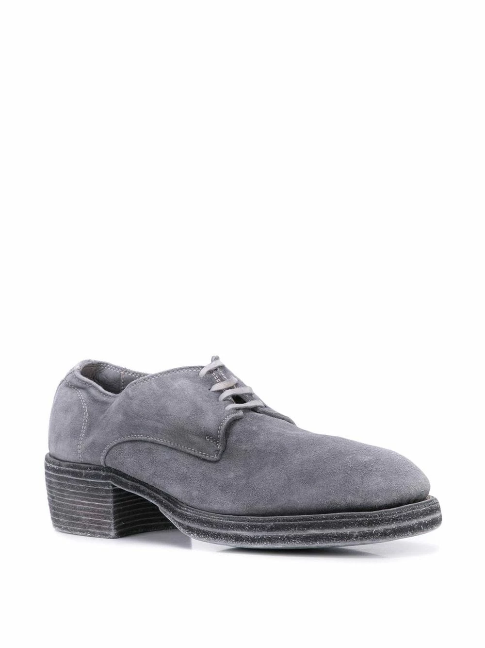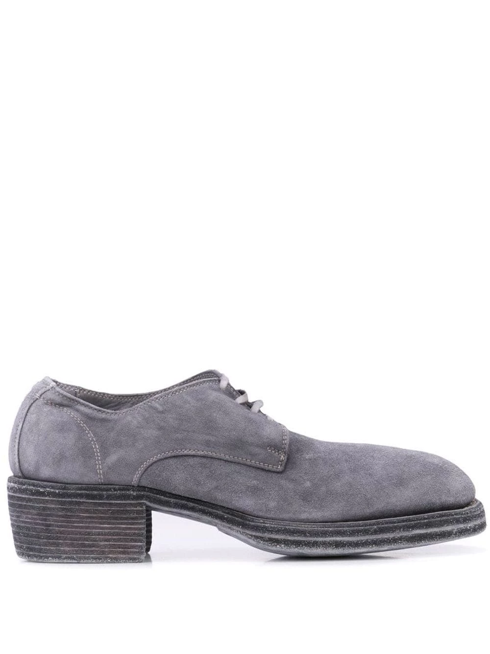 Derbies à petit talon épais en cuir de veau Guidi avec petit talon épais, semelle intérieure à logo et laçage sur le devant.